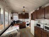 Véranda de 11 m² environ, séjour ouvert sur la cuisine, dégagement donnnant sur les toilettes et la salle de douches et une chambre.