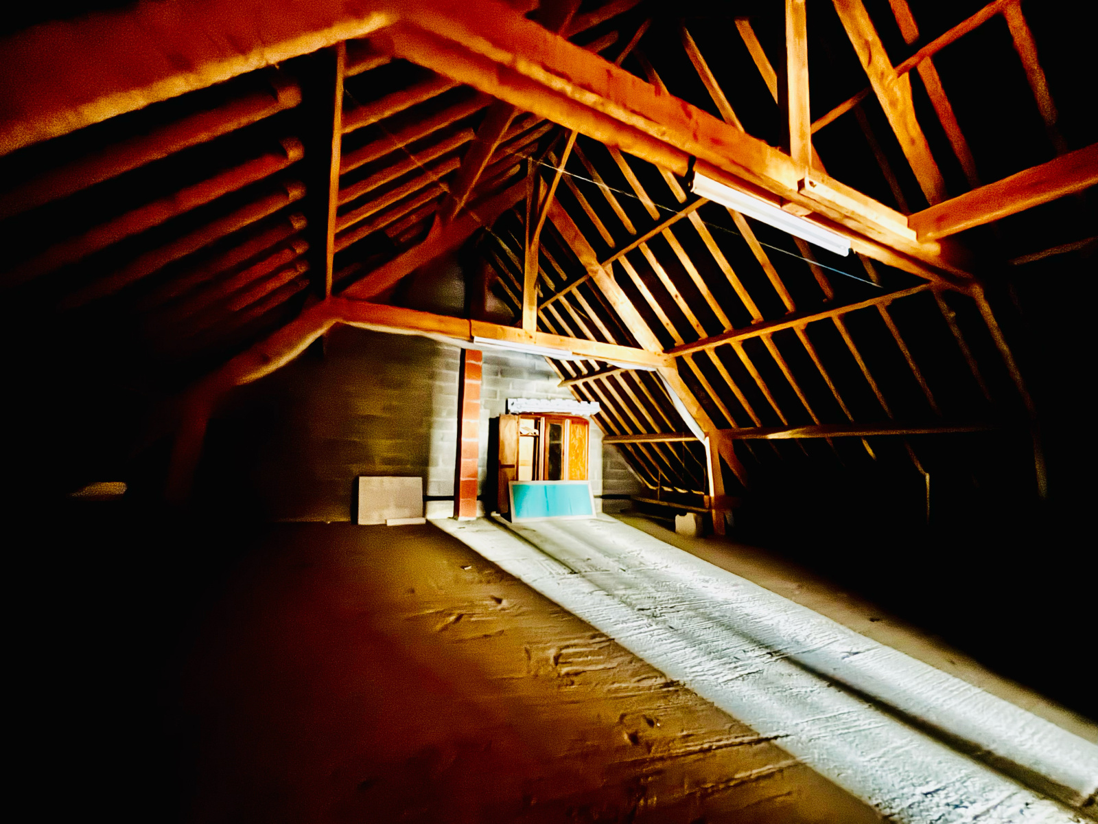 A l'étage (sur dalle bêton) palier avec deux belles chambres ( de 15 m² chacune ) et grenier de 53 m² environ à aménager Garage de 18 m² - chaufferie.