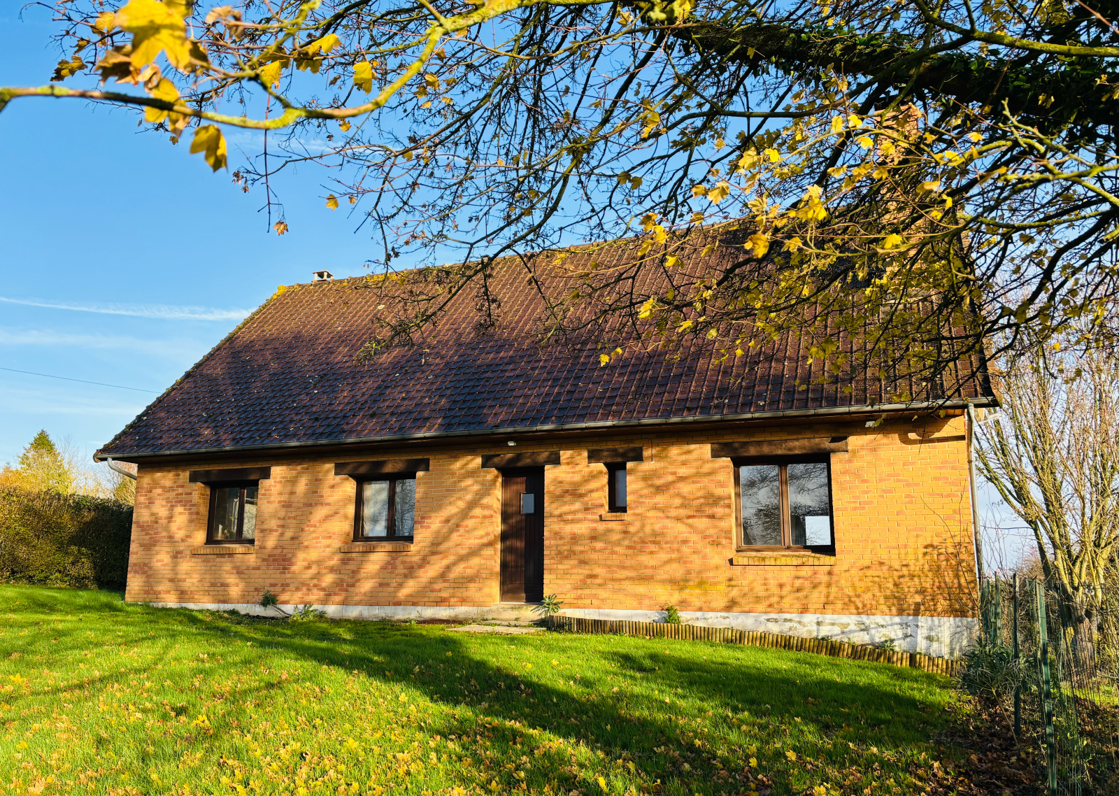 Caractéristiques de ce bien : Hall d'entrée de 11 m² donnant sur un séjour de 32 m² avec cheminée,1 chambre en rez-de-chaussée, cuisine, toilette, salle de douches et arriére-cuisine.